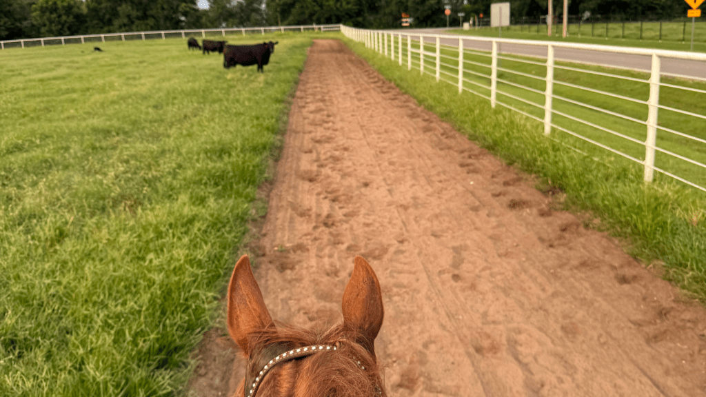 If you’re still in the thick of sleepless nights, this may not be your season for early mornings, and that’s okay. But if you can, I highly recommend starting your day in the barn. Watching the sunrise while I saddle horses is one of my favorite parts of summer. The stillness of the morning helps me focus, reset, and step into the rest of my day with a clear mind. In our home, the mornings I ride, my husband takes over the morning routine, and then meets me at the barn so I can trade off and head home.